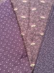 There are 15 prints in shades of the lightest lavender to the darkest eggplant along with 5 lovely neutrals, most with a little plum added into them. Purple fabrics are difficult to capture the true color in photographs, so please click the link below to see better images of each print.
